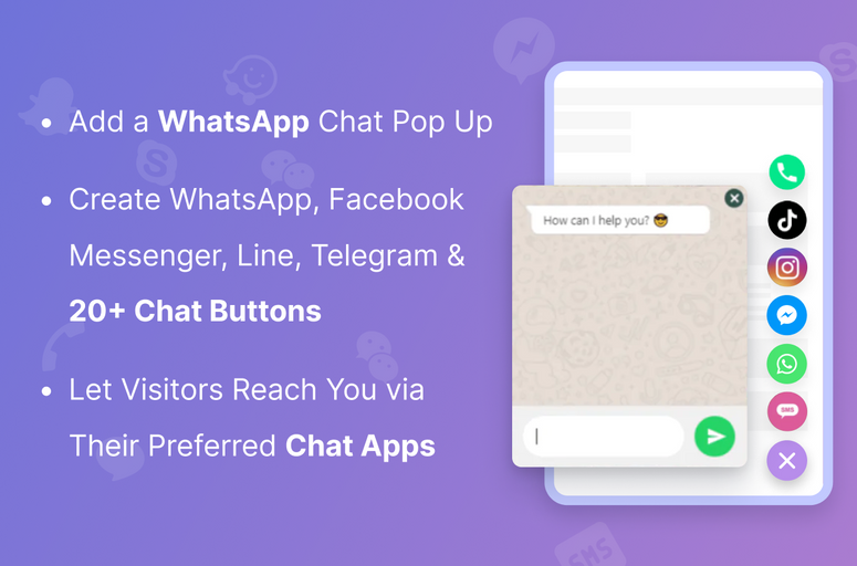 Chaty facilite la communication avec les clients en fournissant des boutons de chat pour plus de 20 canaux :