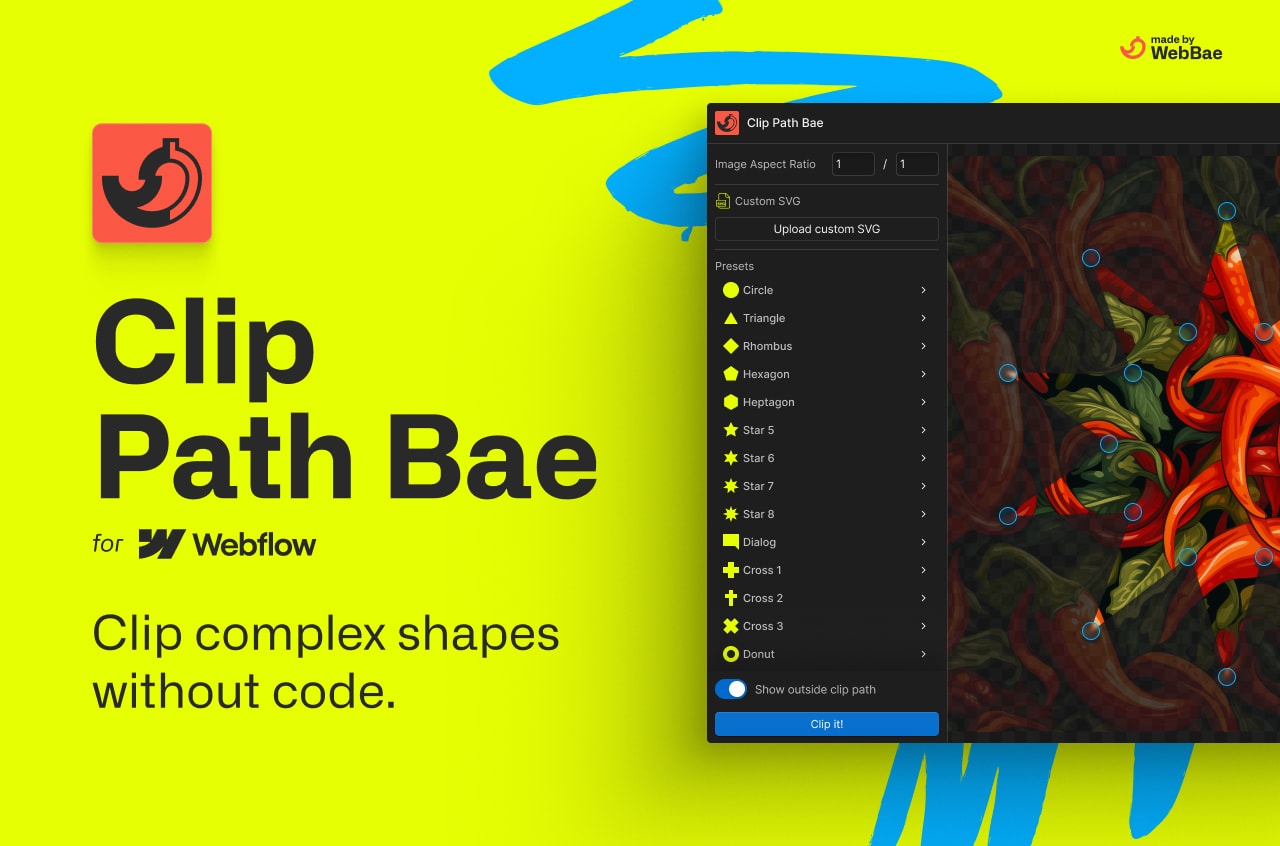 En vous donnant plus de puissance de conception, Clip Path Bae améliore l'apparence des sites Webflow.